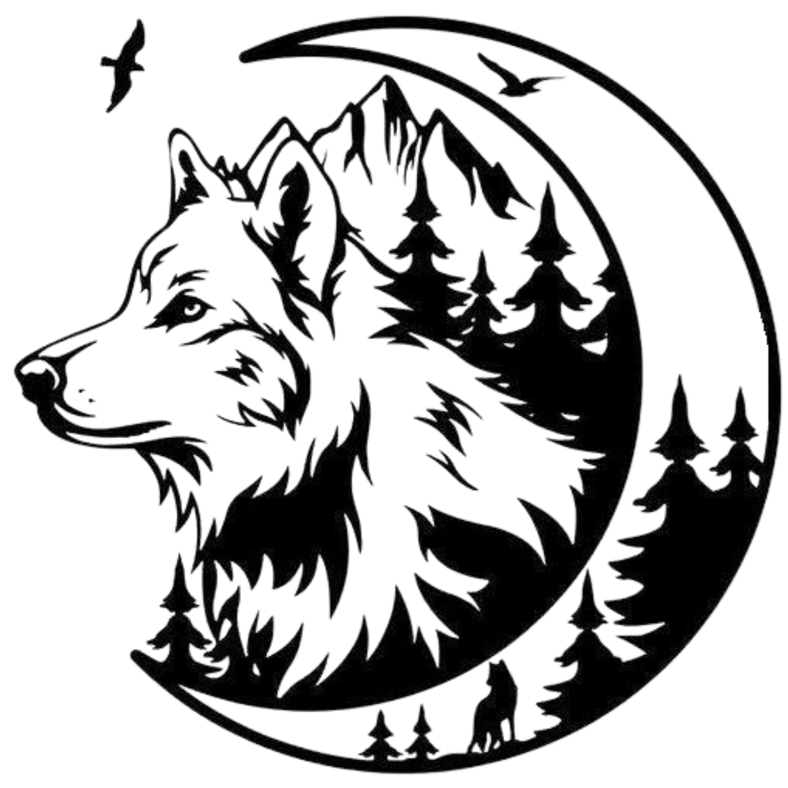 Stickers Loup, lune, montagne